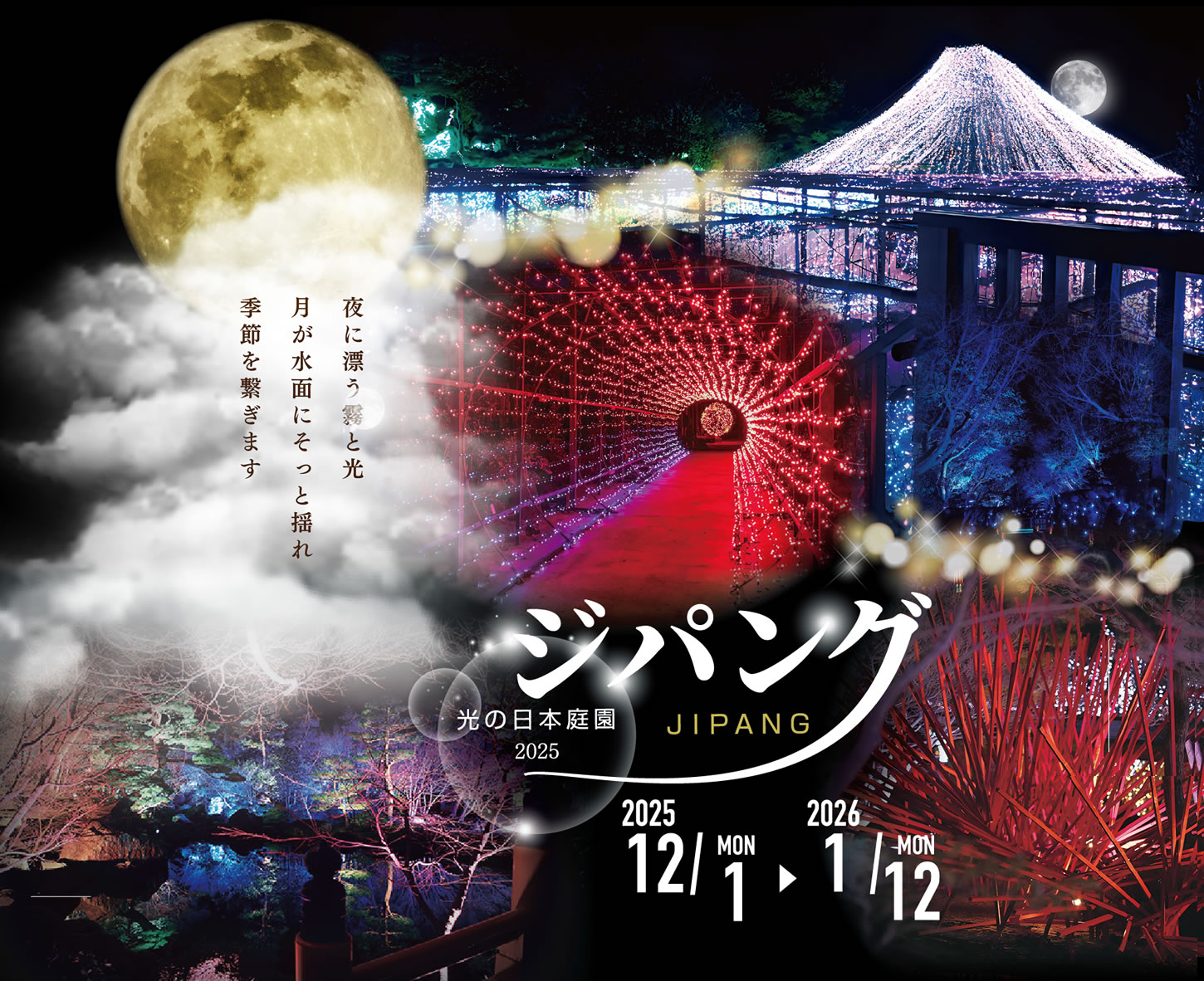 日本庭園を舞台に和のイルミネーションが繰り広げられる「光の日本庭園 ジパング〜JIPANG〜」開催。