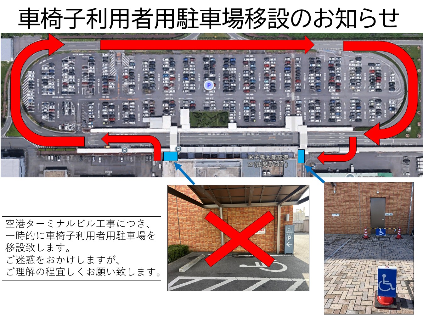 本工事により一時使用の車椅子専用駐車場が西側から東側へ移設されます。