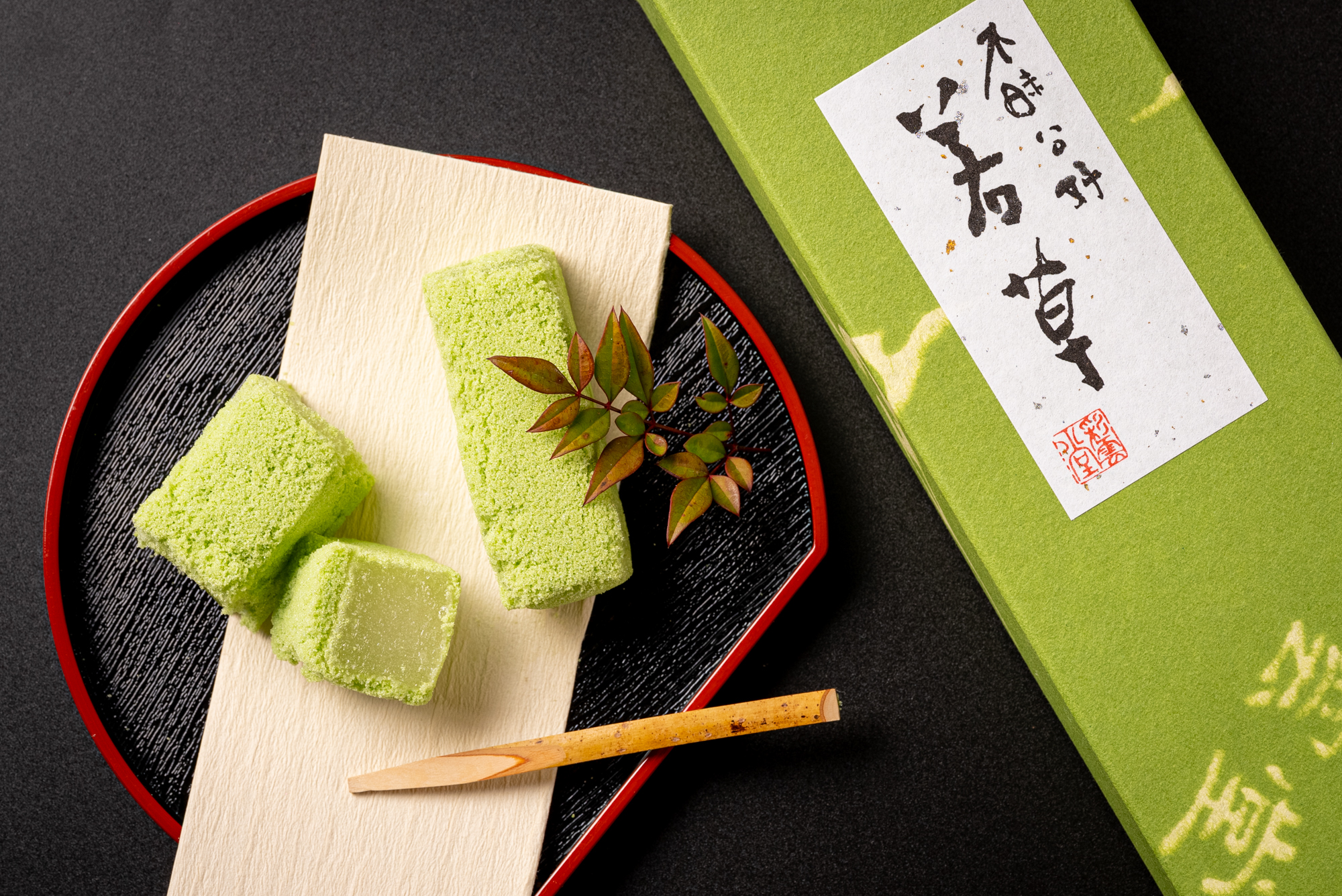 独自の製法で練り上げた弾力のある求肥と、春の若草を思わせる鮮やかな緑の衣。