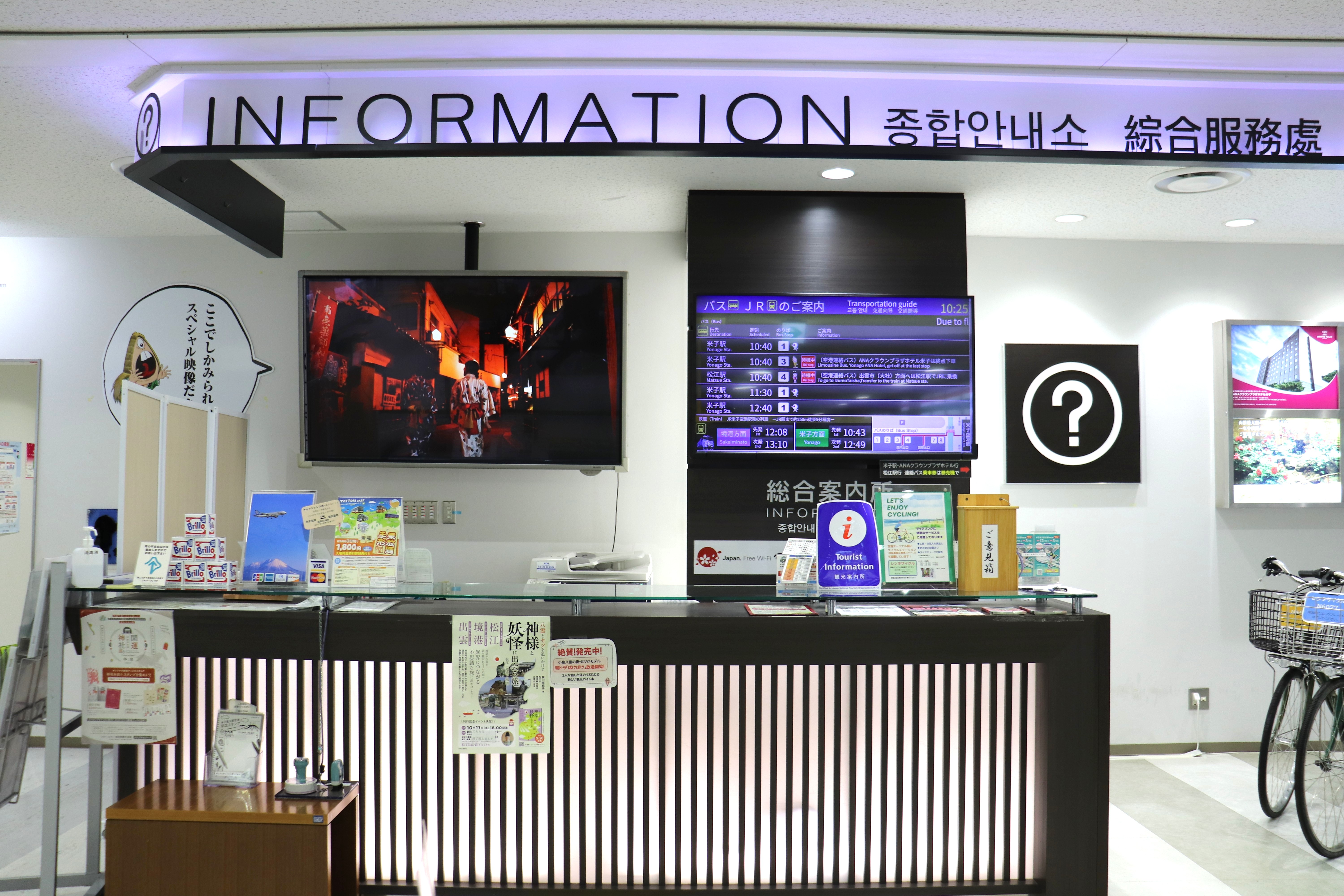 館内施設、山陰の観光地案内、交通手段などのさまざまな情報をご案内のほか、鳥取県内バスの乗り放題手形、東京サブウェイチケット等の販売も行っています。
