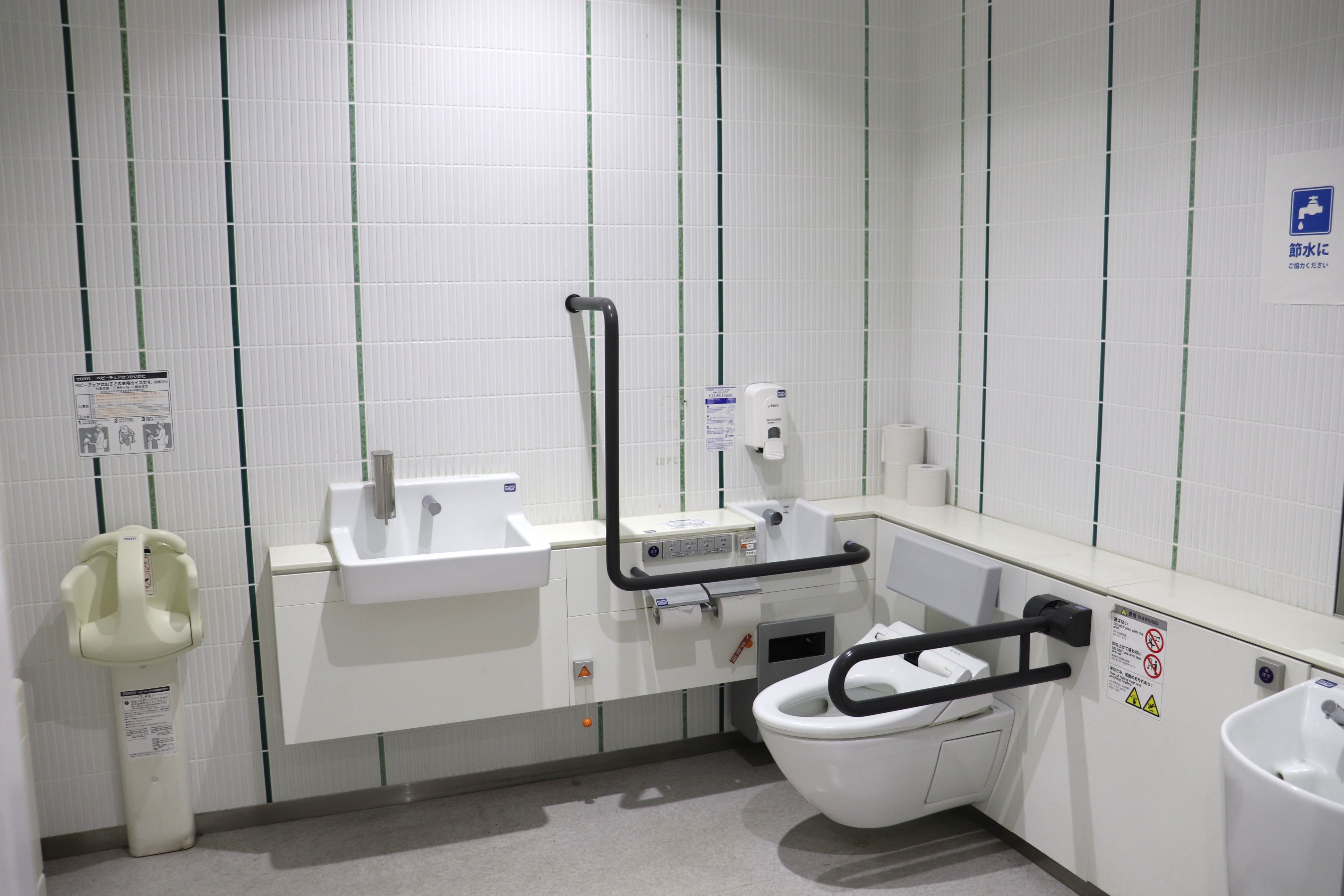 手すり、オストメイト対応設備を完備し、快適にご利用いただけるユニバーサルデザインのトイレです。