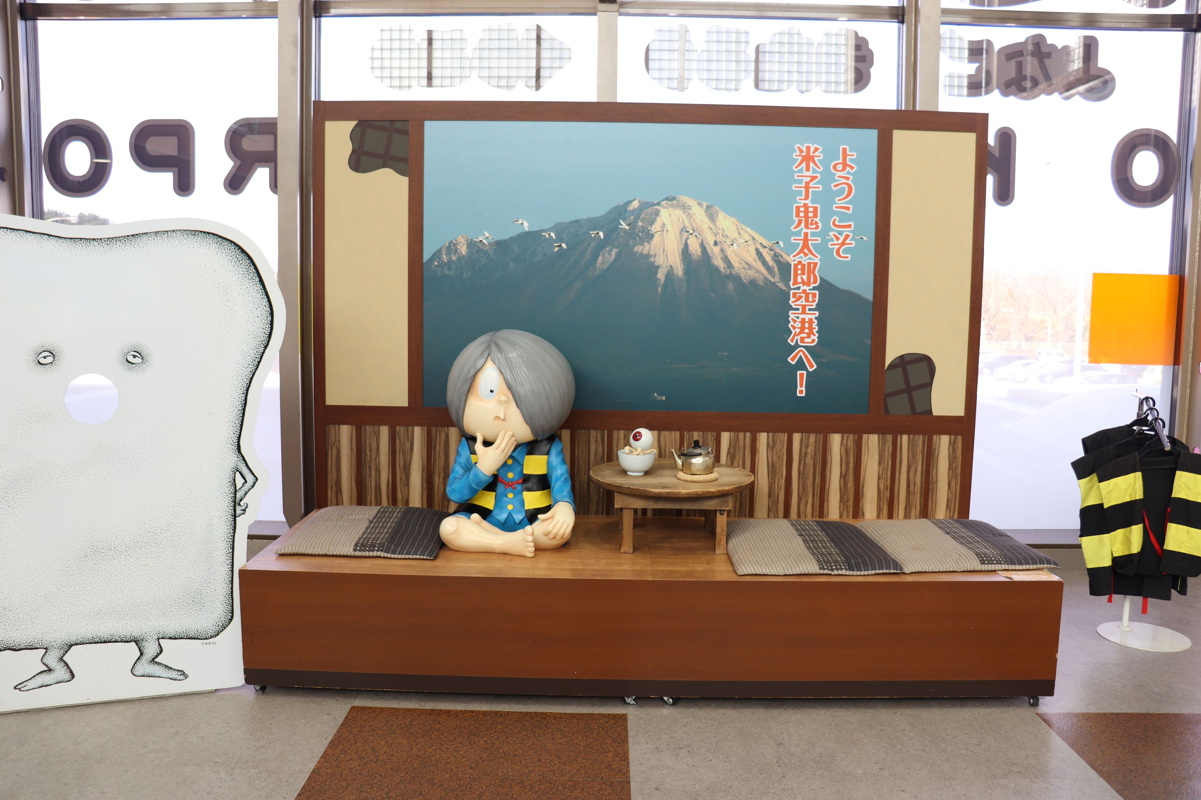 空港ターミナルビル内にあるゲゲゲの鬼太郎の写真スポットです。